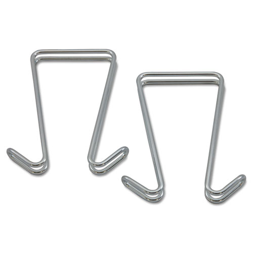 Double Sided Partition Garment Hook, Steel, 0.5 x 3.38 x 4.75, Over-the-Door/Over-the-Panel Mount, Silver, 2/Pack