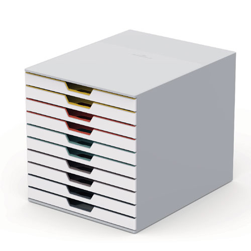 VARICOLOR Stackable Plastic Drawer Box, 10 Drawers, Letter to Folio Size Files, 11.5 x 14 x 11, White