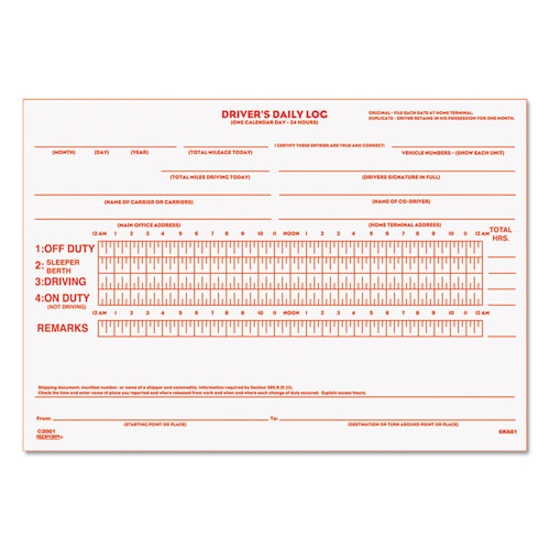 Driver's Daily Log Book with Daily Record and Hours Summary, Two-Part Carbonless, 7.88 x 5.5, 31 Forms Total