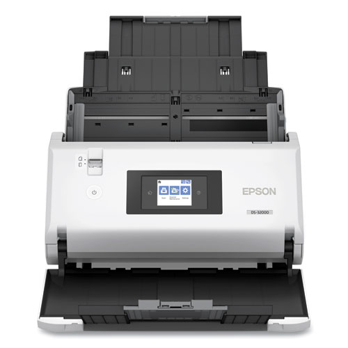 Designed for busy offices, the DS-32000 large-format document scanner makes it easy to take on any project. It offers speeds up to 90 ppm and includes a host of productivity features, such as a 120-sheet Auto Document Feeder, dual-sided scanning, a programmable 2.7" touchscreen and a paper-protection function, all in a flexible design. With versatile paper support, it provides vertical and horizontal feed options. Accommodating sheets up to 12" x 17", it can also scan folded pages, plastic cards, sealed envelopes, and passports. The compact DS-32000 fits your workspace and makes storage easy.
