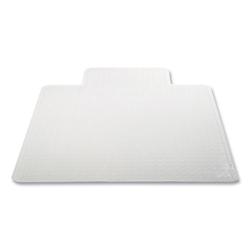 Lightweight, durable performance for moderate use on carpets up to 0.38" thick. Easy-glide rolling surface provides effortless chair movement. Studded design secures mat from moving while protecting carpet from caster wear, spills and heavy traffic. Free and Clear® non-phthalate, non-cadmium formula promotes a healthy work environment while offering exceptional clarity and durability. Smooth beveled edge for easy carpet-to-mat transition.