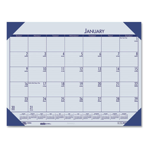 EcoTones Recycled Monthly Desk Pad Calendar, 22 x 17, Ocean Blue Sheets/Corners, Black Binding, 12-Month (Jan-Dec): 2024