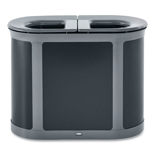 ENHANCE PILL Dual Stream Waste Receptacle, (2) 23 gal Capacity Bins, Metal, Umbra Gray/Pearl Gray
