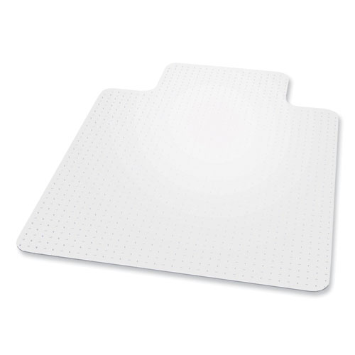 Extend the life of your flat pile carpet by protecting against chair caster wear and tear. The perfect addition to your workspace, EverLife® chair mats provide a smooth surface that enhances ergonomic comfort by allowing your rolling office chair to move freely. Easy to handle, this chair mat features rounded AnchorBar® cleats (studs) that hold your mat in place and are gentle on carpets and hands (no sharp spikes). EverLife® chair mats are made with durable vinyl that is GREENGUARD Gold Certified for low chemical emissions to promote a healthier workspace. Designed for use on carpeted surfaces only, do not use on hard floors.
