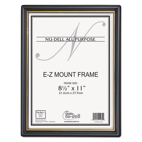 Ez Mount Document Frame With Trim Accent And Plastic Face, Plastic, 8.5 X 11 Insert, Black/gold