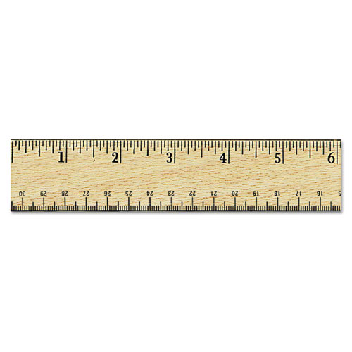 Flat Wood Ruler W/double Metal Edge, Standard, 12" Long, Clear Lacquer Finish