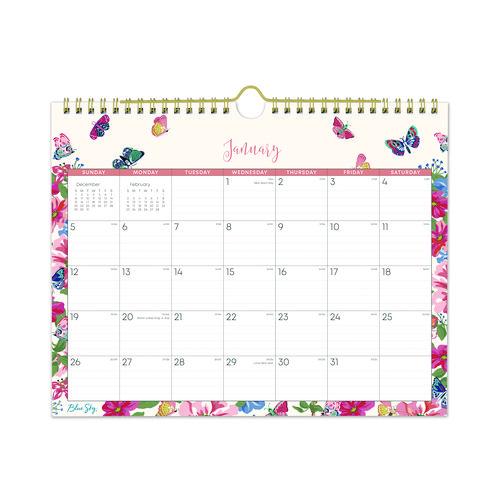 Spruce up your home or office with whimsical artwork while you keep your days on track. Butterflies flit across each page of this colorful calendar to bring cheer to every day of your year. Ruled daily blocks help you keep your notations neat, while the thick, premium pages prevent your ink from bleeding through. Monthly format features daily blocks running Sunday through Saturday, a count of days past and days remaining, labeled holidays as well as past and future month reference blocks. Attractive, brightly polished twin-wire binding features a sturdy wall-mount loop for secure hanging. Printed with soy-based inks on acid-free paper.