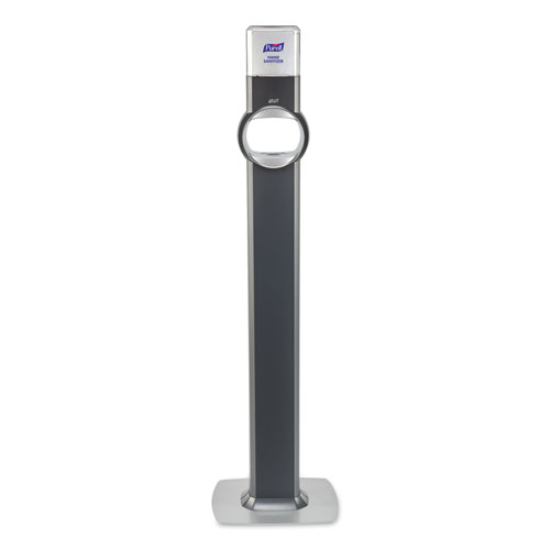 Premium, reliable touch-free dispenser stand for PURELL® Hand Sanitizer. An elegant floor stand that reinforces high quality standards, while complimenting any décor. Includes Four "C" cell batteries—no tools required for replacing batteries. Multi-directional design unlocks new placement possibilities wherever hand hygiene is needed. Uses same AT-A-GLANCE™ refills as PURELL® ES6, making it easy to monitor product levels with just one look. Seamlessly integrated tray to help maintain cleanliness. Low-profile baseplate maximizes stability and hides dirt.
