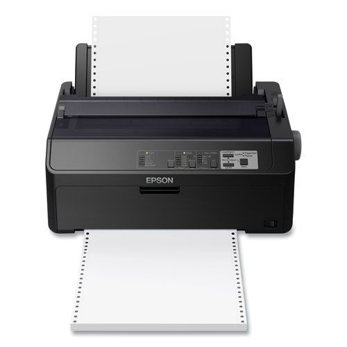 The Epson FX-890II Series offers the durability and ease of use for critical daily print requirements. This reliable 9-pin, narrow-carriage impact printer boasts a long life cycle and speeds up to 738 cps. The up-to-7.5-million-character ribbon cartridge reduces user interventions as well as cost per page. Engineered for seamless integration into virtually any system, it includes Epson ESC/P®, IBM® PPDS and MICROLINE® printer languages. Ideal for harsh environments, this workhorse races through cut-sheet, continuous or multipart forms up to seven pages thick, and features an intuitive control panel for easy setup and operation.