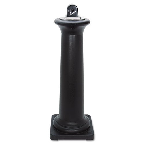 Tuscan style adds an upscale look; blends with many architectural styles. Smooth, injection-molded plastic is rust resistant and easy to clean. Galvanized steel waste collector holds large quantities of butts; empties quickly. Stainless steel snuff plate minimizes smoldering. Anchor holes for added security.