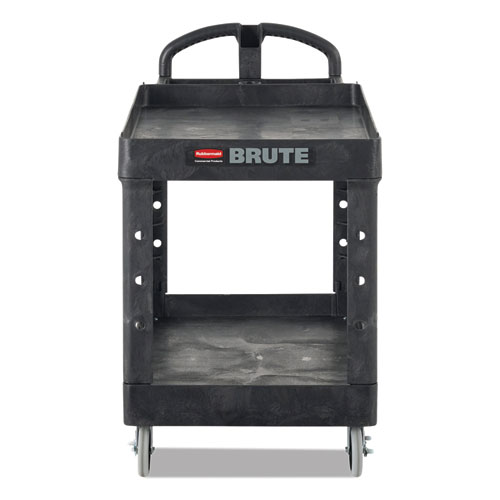 Heavy-Duty Utility Cart with Lipped Shelves, Plastic, 2 Shelves, 750 lb Capacity, 25.25" x 54" x 39.25", Black