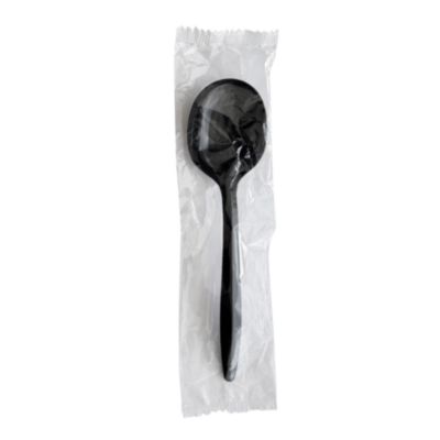 Heavyweight Polypropylene Cutlery, Soup Spoon, Black, 1,000/Carton