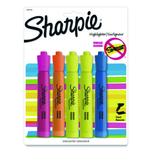 Tank Style Highlighters, Assorted Ink Colors, Chisel Tip, Assorted Barrel Colors, 5/Pack