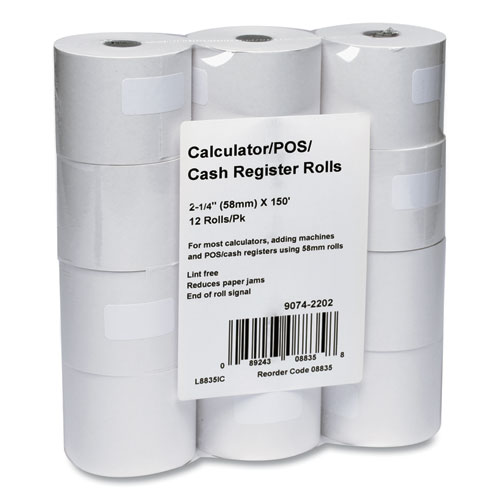 Impact Bond Paper Rolls, 2.25" X 150 Ft, White, 12/pack