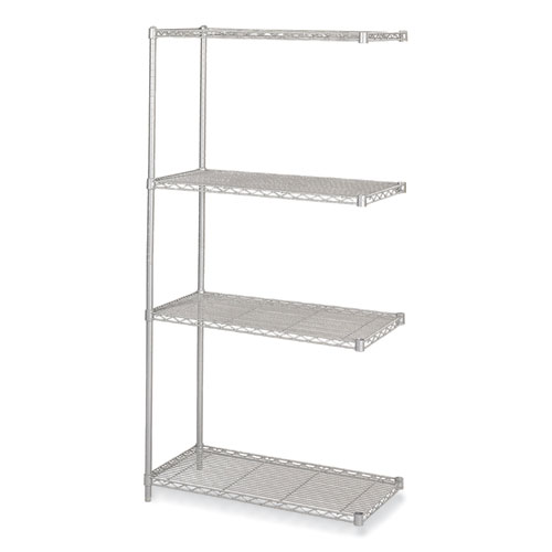 The Industrial Add-On Unit is an extra strength, welded wire construction storage shelf. The open wire shelves are perfect for office storage, promotes air circulation and reduces dust accumulation. The storage shelf is furnished with wire shelves that adjust in 1 increments, and includes four steel shelves, four posts and snap-together clips.