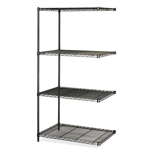 The Industrial Add-On Unit is an extra strength, welded wire construction storage shelf. The open wire shelves are perfect for office storage, promotes air circulation and reduces dust accumulation. The storage shelf is furnished with wire shelves that adjust in 1 increments, and includes four steel shelves, four posts and snap-together clips.