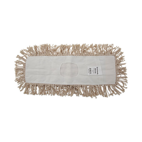 Ten-ply, Hygrade white cotton, cut-end design enhances durability while minimizing snags. Quick-drying, absorbent, slot pocket style with synthetic backing. Used for attaching a mop handle and dusting floors. Works with spray or liquid dust mop treatment and other solutions used to dust floors and add shine. Great for general purpose cleaning and wiping floor surfaces of various materials. Mop handle and dust mop frame are sold separately.