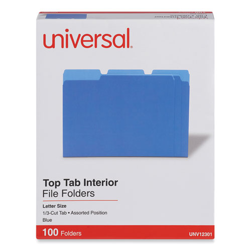 Interior File Folders, 1/3-Cut Tabs: Assorted, Letter Size, 11-pt Stock, Blue, 100/Box