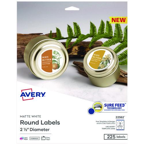 Laser/Inkjet Media Labels, Inkjet/Laser Printers, 2.5" dia, Matte White, 9 Labels/Sheet, 25 Sheets/Pack