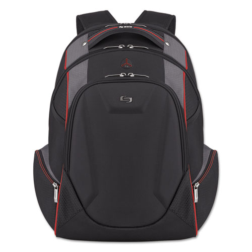 Launch Laptop Backpack, Fits Devices Up to 17.3", Polyester, 12.5 x 8 x 19.5, Black/Gray/Red