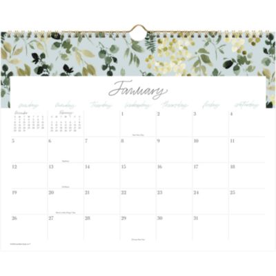 Add some fun to your planning with a fresh and delicate watercolor design. One month per page format features unruled daily blocks for notating events, plans and reminders. Past and future reference calendars enable quick and easy date checking. Polished-metal twin-wire binding keeps pages secure, while a matching hanging loop allows for easy wall display.
