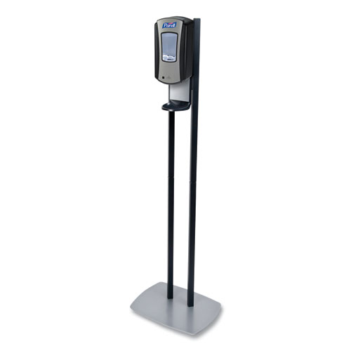 Freestanding design, ideal for high-traffic areas. Low profile baseplate designed to maximize stability. Lightweight and easily moved when cleaning the facility. Silver baseplate hides dirt and always looks good. Includes PURELL® LTX-12™ Hand Sanitizer Dispenser.