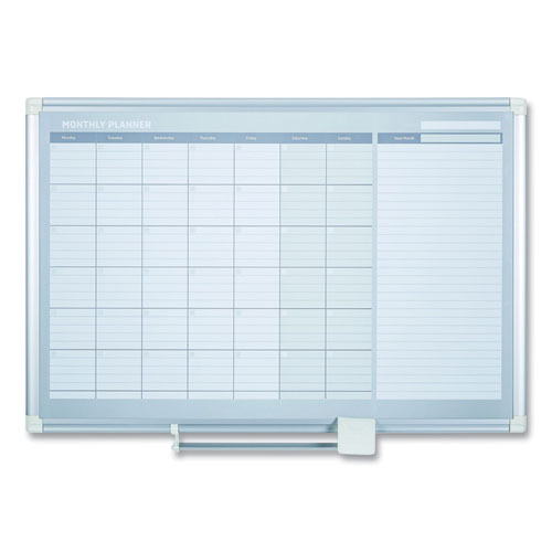 magnetic dry erase calendar board, one month, 36 x 24, white surface, silver aluminum frame