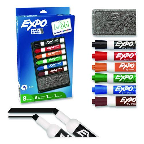 Low-Odor Dry Erase Marker And Organizer Kit, Broad Chisel Tip, Assorted Colors, 6/set