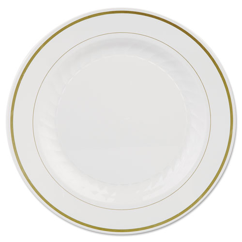 Masterpiece Plastic Plates, 10.25"dia, Ivory/gold, 10/pack, 12 Packs/carton