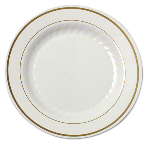 Masterpiece Plastic Plates, 7.5" Dia, Ivory/gold, 10/pack, 15 Packs/carton