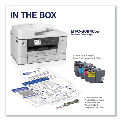 The Brother MFC-J6940DW color inkjet all-in-one printer delivers the functionality your office needs for optimum business performance. Print professional quality text and graphic documents at print speeds up to 28 ppm (black and color). A smart choice for businesses that need a printer to handle mixed media sizes; two 250-sheet capacity paper trays offer flexibility to print, copy, scan and fax on paper up to 11" x 17" (Ledger) size. Raising the bar with single-pass duplex copy and scan functionality. Use convenient NFC mobile printing or access features on the go with the free Brother Mobile Connect App. Whether you print a little or a lot, the convenient Brother Refresh EZ Print Subscription Service erases the worry of running out of ink. The Brother MFC-J6940DW color inkjet All-in-One printer offers reliable, professional-quality printing for any small work group or small business.
