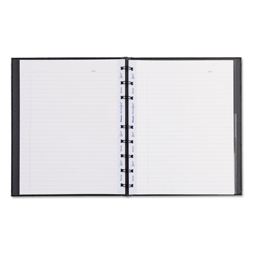 Clever design helps you organize your notes with ease. Innovative sheet binding allows pages to be removed and reinserted to fit your personal needs. Both sides of microperforated pages are ruled with a margin printed with vegetable oil-based ink. Features a repositionable vinyl pocket, an index sheet and self-adhesive tabs. Constructed with a sturdy twin-wire binding and hard lizard-look cover.