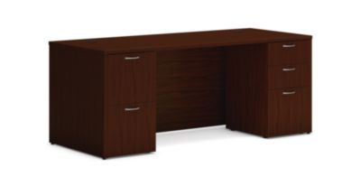 Mod offers any workspace, big or small, straightforward, no-nonsense design, exceptional durability and versatility that stands the test of time. This double pedestal desking solution lets you protect what's important and provides easy access to personal items, office supplies, and more. Cancel cord confusion with handy desktop grommets designed to organize power and data cables. Avoid scratches, spills, and stains with a durable, easy-to-clean laminate. Steel ball-bearing drawer suspensions operate easily and quietly.