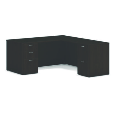 Mod offers any workspace, big or small, straightforward, no-nonsense design, exceptional durability and versatility that stands the test of time. This double pedestal L-station desking solution lets you protect what's important and provides easy access to personal items, office supplies, and more. Cancel cord confusion with handy desktop grommets designed to organized power and data cables.