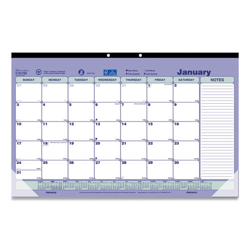 Monthly Desk Pad Calendar, 17.75 x 10.88, White/Blue/Green Sheets, Black Binding, Clear Corners, 12-Month (Jan to Dec): 2024
