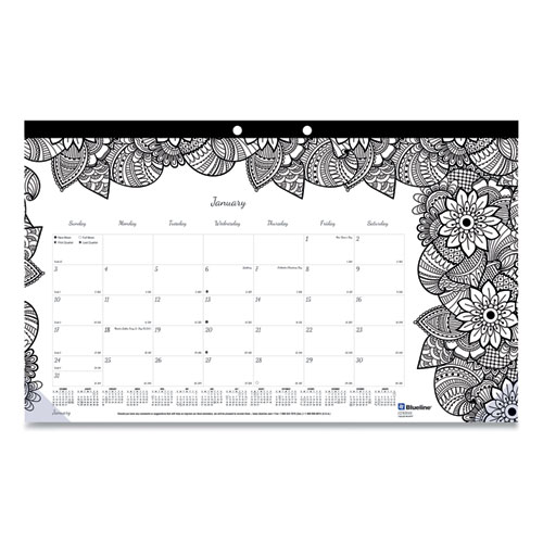 Monthly Desk Pad Calendar, DoodlePlan Coloring Pages, 17.75 x 10.88, Black Binding, Clear Corners, 12-Month (Jan-Dec): 2024