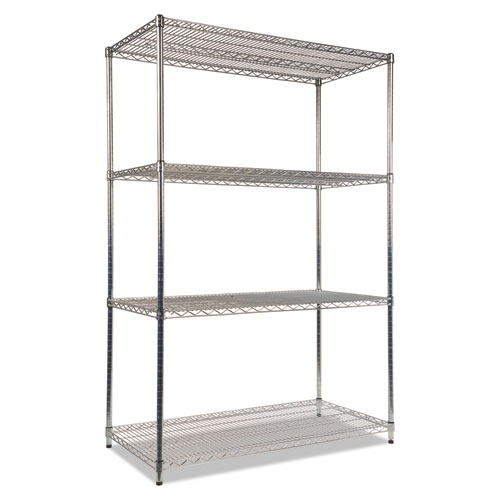 - NSF Certified Industrial Four-Shelf Wire Shelving Kit, 48w x 24d x 72h, Silver
