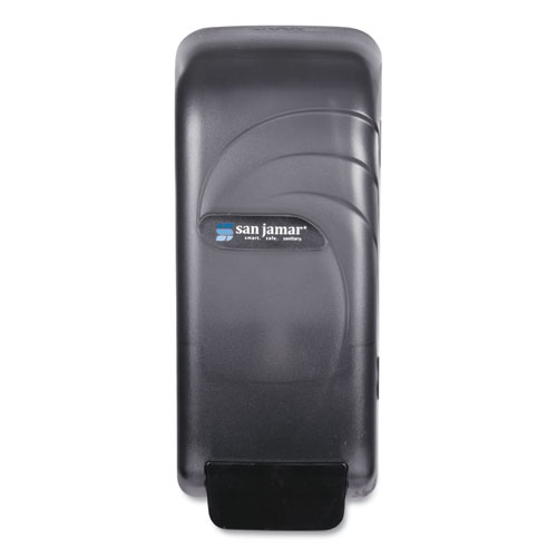 Versatile dispenser may be used in conjunction with three separate delivery systems: bulk liquids and gels, bag-in-box cartridges or bag refills. Included 800-mL bottle accommodates bulk liquid soaps and gel sanitizers. Impact-resistant plastic shell easily mounts to walls. Security lock utilizes a standard San JamarĀ® waffle key.