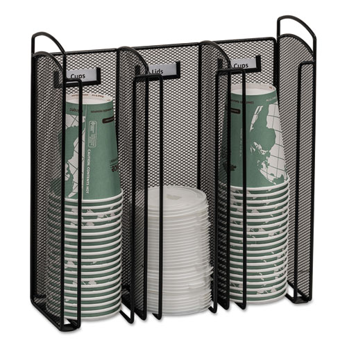 Onyx Breakroom Organizers, 3 Compartments, 12.75 x 4.5 x 13.25, Steel Mesh, Black