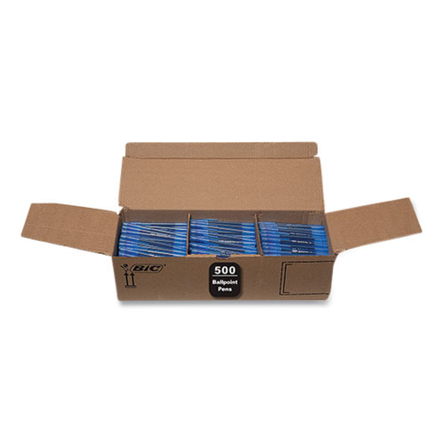 Round Stic Xtra Life Ballpoint Pen, Stick, Medium 1 mm, Blue Ink, Translucent Blue Barrel, 500/Pack