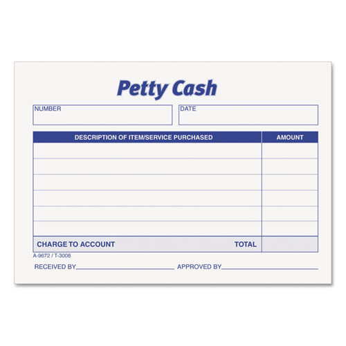 Petty Cash Slips, One-Part (No Copies), 5 x 3.5, 50 Forms/Pad, 12 Pads/Pack
