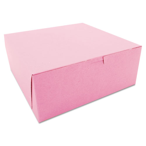 Pink One-Piece Non-Window Bakery Box, 10 x 10 x 4, Pink, Paper, 100/Carton