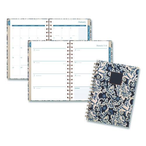 Elizabeth Weekly/Monthly Planner, 8.5 x 5.5, Floral Artwork, Blue Cover, 12-Month (Jan-Dec)
