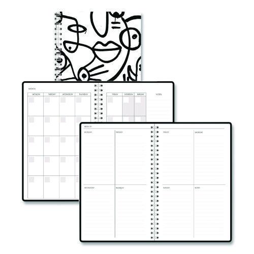 Recycled Non-Dated Monthly/Weekly Planner, Abstract Faces, Black/White Cover, Undated