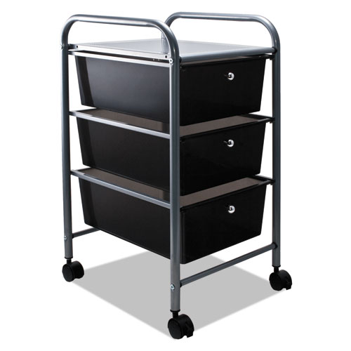 This rolling cart is a simple storage solution for a home office or workspace. The cart holds slide-out drawers for organizing paperwork, office supplies, small tools, and other items. Also features 360-degree rotating wheels for easy mobility with two locking casters to keep the cart securely in place.