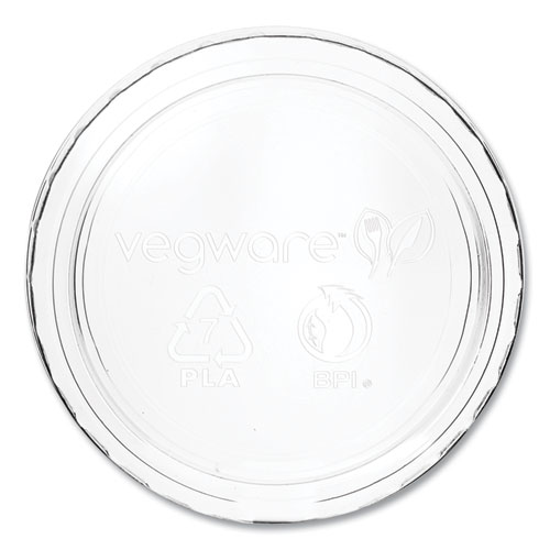A flat round lid to fit Vegware™'s 2 oz to 4 oz portion pots. Offers a great seal and easy stacking. Stop that sauce from escaping. Made from PLA, a renewable material made from plants. Clear for visibility. Award-winning quality by Vegware™, made from plants. Commercially compostable where accepted.