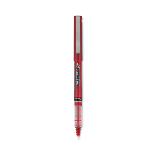 Precise V7 Roller Ball Pen, Stick, Fine 0.7 mm, Red Ink, Red/Clear Barrel, Dozen