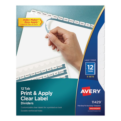 Print and Apply Index Maker Clear Label Dividers, 12-Tab, White Tabs, 11 x 8.5, White, 5 Sets