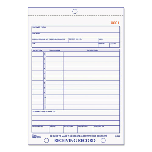 Receiving Record Book, Three-Part Carbonless, 5.56 x 7.94, 50 Forms Total