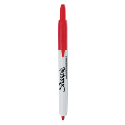 Retractable Permanent Marker, Fine Bullet Tip, Red
